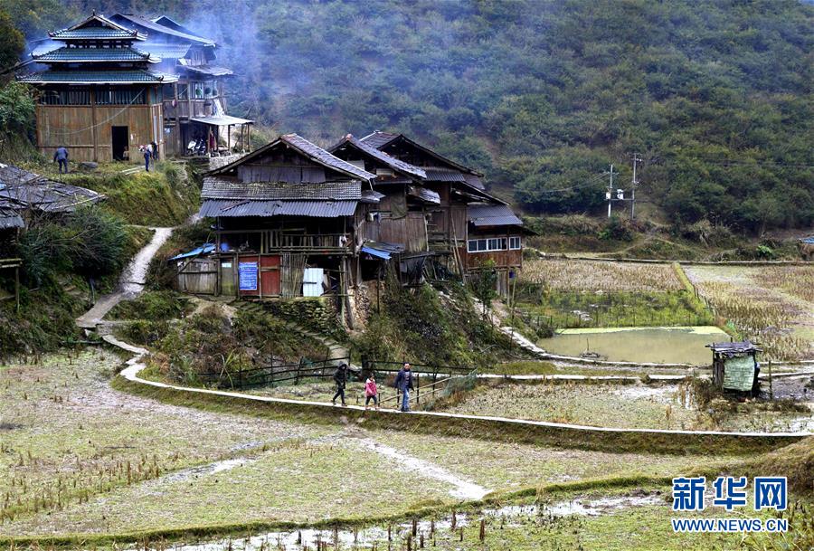 1月10日,在大滩村芝打屯,陈万荣去村里接两名学生到教学点上课。