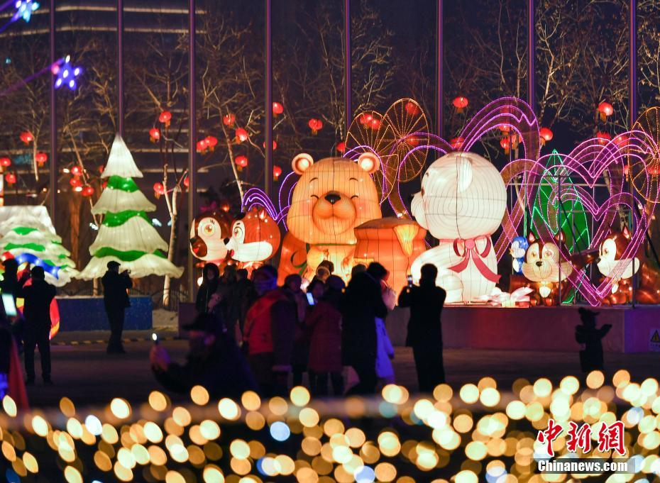 1月11日晚,乌鲁木齐迎春花灯展上,流光溢彩的各式花灯吸引民众前来观光游玩。本次花灯展共展出60余组花灯,既有“金猪贺岁”、“龙腾盛世”、“花开富贵”等传统迎春花灯,也有小朋友喜欢的“冰雪女王”、“熊出没”、“功夫熊猫”等动漫主题花灯。中新社记者 刘新 摄