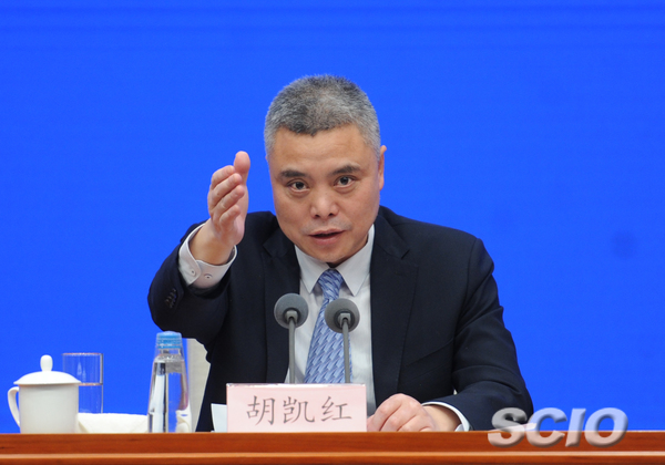 国新办新闻局局长、新闻发言人胡凯红邀请记者提问(焦非 摄)
