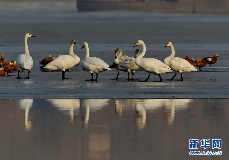 1月13日,天鹅等水鸟在张家口市宣化区洋河水库休憩。 近年来,河北省张家口市宣化区立足京津冀生态涵养区的功能定位,不断加大环境治理和生态功能修复力度,使洋河水库及周边湿地成为天鹅、大雁、野鸭、灰鹤等多种鸟类南北迁徙中的栖息地。 新华社记者杨世尧摄