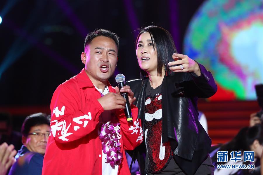 1月13日,歌手那英(右)在颁奖典礼上与获奖教师袁辉共同演唱。 当日,第四届“马云乡村教师奖”颁奖典礼在海南陵水黎族自治县举行,来自云南、贵州、四川、浙江等地的101名乡村教师获评“马云乡村教师”。“马云乡村教师奖”每年举办一届,为获奖者提供持续3年总额10万元的奖金资助和专业发展支持。 新华社记者 张玉薇 摄