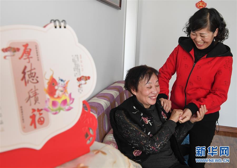 2018年10月15日,杨素静(右)在家中为婆婆按摩。 新华社记者 龙雷 摄