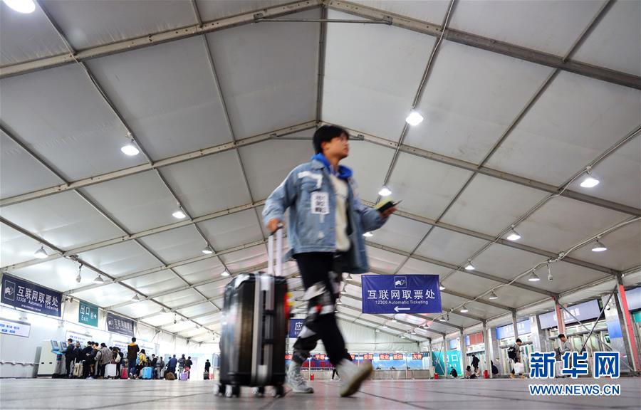 1月15日,一名旅客在广州火车站售票大厅外临时搭建的互联网购票取票大棚内取票。 为适应互联网购票旅客比重持续上升趋势,广州火车站在筹备2019年春运票务业务时,优化互联网购票取票和退改签业务办理流程设计,提升效率,方便旅客出行。 新华社记者刘大伟摄