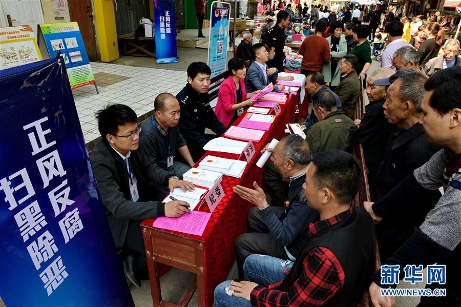 2018年以来,福建省建瓯市纪委通过专项巡察和下乡接访等方式广泛听取群众意见,推进全面从严治党向基层延伸。这是建瓯市接访工作人员在小桥镇墟日上接受群众来访(2018年4月1日摄)。新华社记者 张国俊 摄