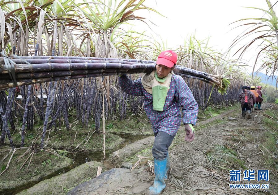 1月15日,在广西阳朔县福利镇,果农忙着采收果蔗。 新华社发