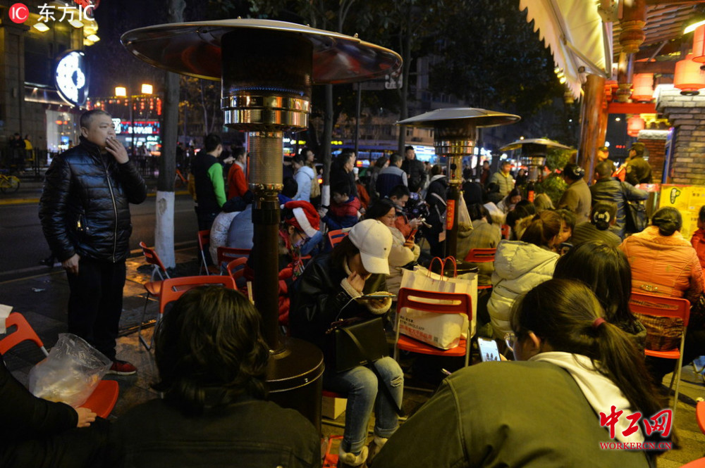 2019年1月13日,四川成都三圣街一火锅店举行免费吃火锅活动,为了避免排队的市民发生意外,火锅店还特意为排队的市民搬来了凳子和烤火炉。