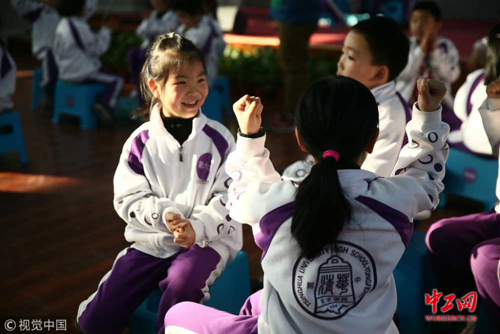 2019年1月10日,北京清华附中永丰学校(小学部)一年级学生参加软实力培养期末综合实践活动。图为获胜小组的小学生。鄂晓颖/千龙图像/视觉中国