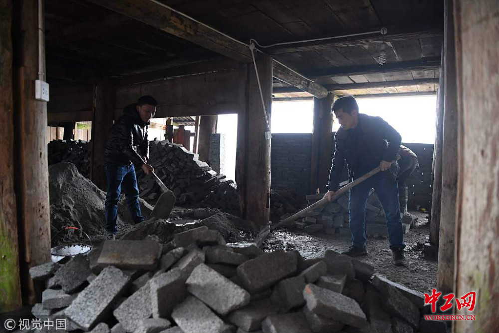 2019年1月15日,贵州省榕江县计划乡加化村村民正在改造旧房。王炳真/视觉中国