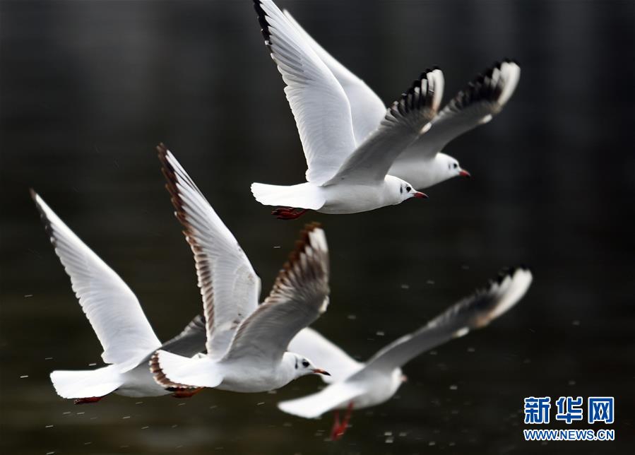 红嘴鸥在昆明翠湖公园飞舞(1月7日摄)。 入冬以来,数万只红嘴鸥飞临云南昆明翠湖公园、滇池海埂大坝等地,成为城市一道亮丽的风景。 新华社记者杨宗友摄