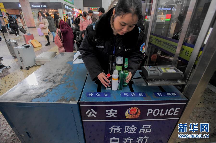 1月16日,工作人员在长沙火车站整理违禁品。 春运临近,长沙火车站全面强化安检工作,提高服务水平,全力保障旅客平安顺利出行。 新华社发(陈泽国 摄)