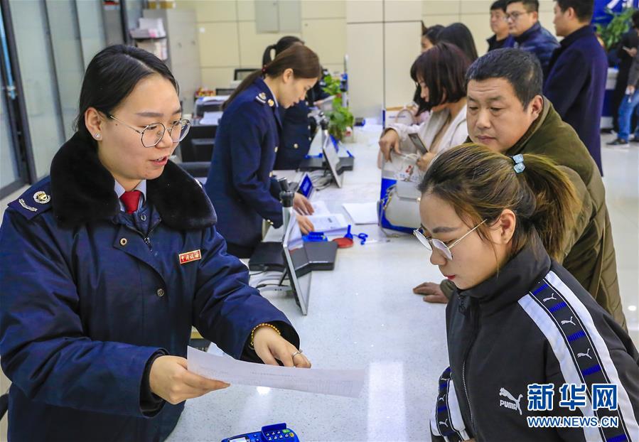 1月16日,安平县税务局工作人员在综合窗口为纳税人介绍涉税业务办理流程。 为给纳税人提供更便捷的办税服务,河北省安平县税务局服务大厅从2018年2月起特设自助办税区,市民可自助办理网络申报、发票领用等业务。此外,在“7(天)×24小时自助厅”,市民可全天候办理社保费缴纳、三方协议认证、完税凭证转开等多项业务,填补“八小时工作制”外的盲区,为市民提供“24小时不打烊”的服务。目前,80%涉税业务可实现全流程网上自助办理, 新华社记者 李晓果摄