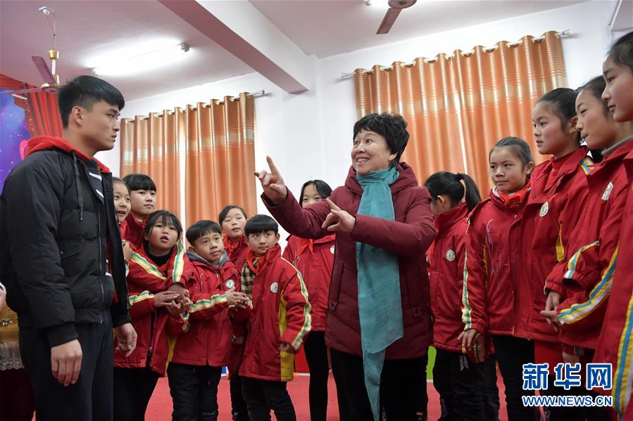 1月16日,在江西省南昌市南昌县塔城乡河西小学,“南昌采茶戏”的代表性传承人魏小妹在指导学生们表演。 为了丰富学生们的校园文化生活,江西省南昌市南昌县塔城乡组织开展传统戏曲进校园活动,邀请本土戏曲“南昌采茶戏”的代表性传承人深入学校,指导学生们排练剧目,让孩子们近距离感受传统文化的魅力,增进对传统文化的了解和传承。 新华社记者 彭昭之 摄
