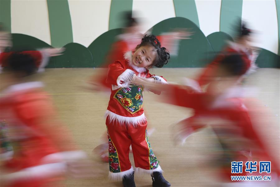 连日来,江苏省淮安市洪泽湖幼儿园小朋友加紧排练舞蹈“中国娃”,准备在幼儿园的迎新春晚会上表演。