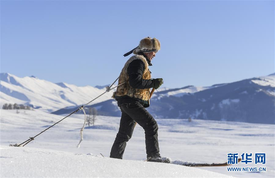 马马尼滑行至新疆喀纳斯景区观鱼台附近的雪原上(1月5日摄)。 新华社记者胡虎虎摄