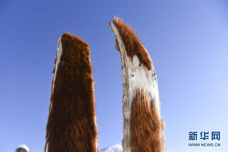 参与毛皮滑雪之旅的牧民行进在新疆阿勒泰地区的雪原上(1月7日无人机拍摄)。 新华社记者胡虎虎摄