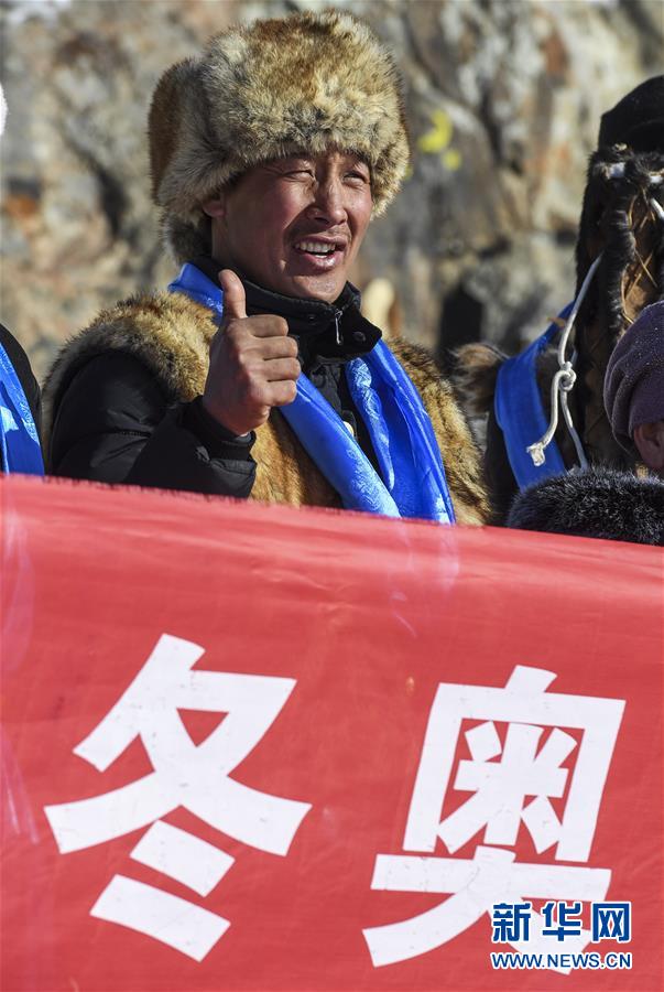 参与毛皮滑雪之旅的牧民在途中休息吃饭(1月14日摄)。 新华社记者胡虎虎摄