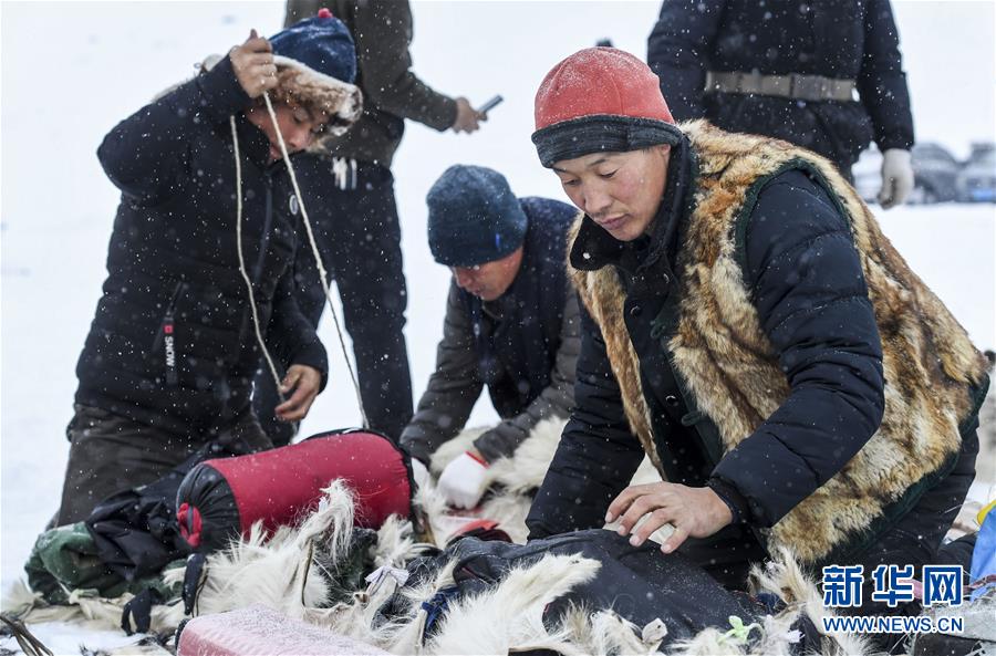马马尼从位于新疆布尔津县禾木村的家中出发,前往位于新疆哈巴河县白哈巴村的起点集合(1月4日摄)。 新华社记者胡虎虎摄