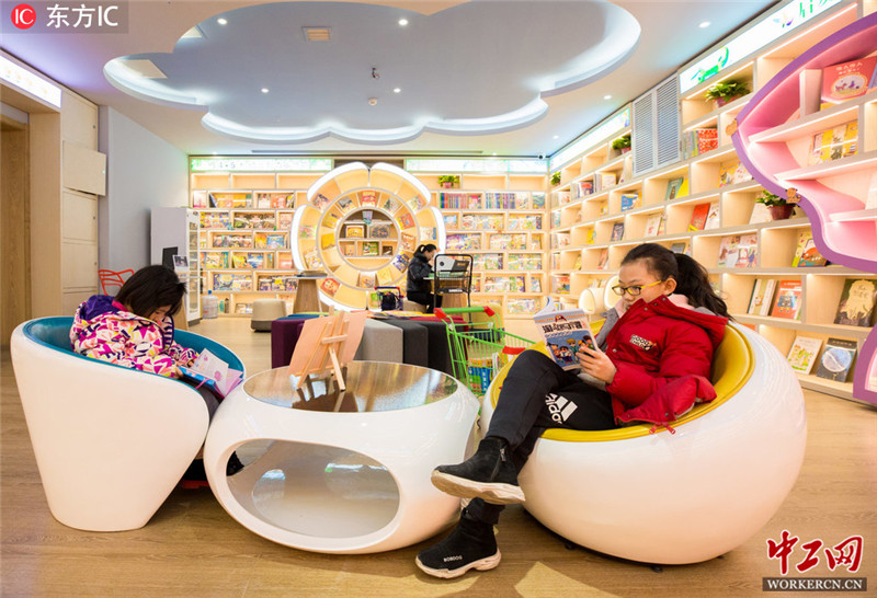 2019年1月17日,呼和浩特,读者在“阅立方图书阅读广场”内看书选书。