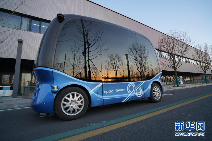 百度无人车在雄安新区市民服务中心内行驶(2018年12月7日摄)。
