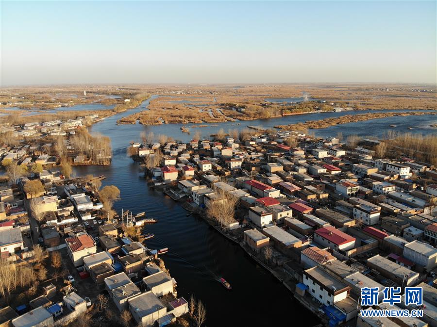 雄安新区白洋淀上的村庄(2018年12月6日无人机拍摄)。