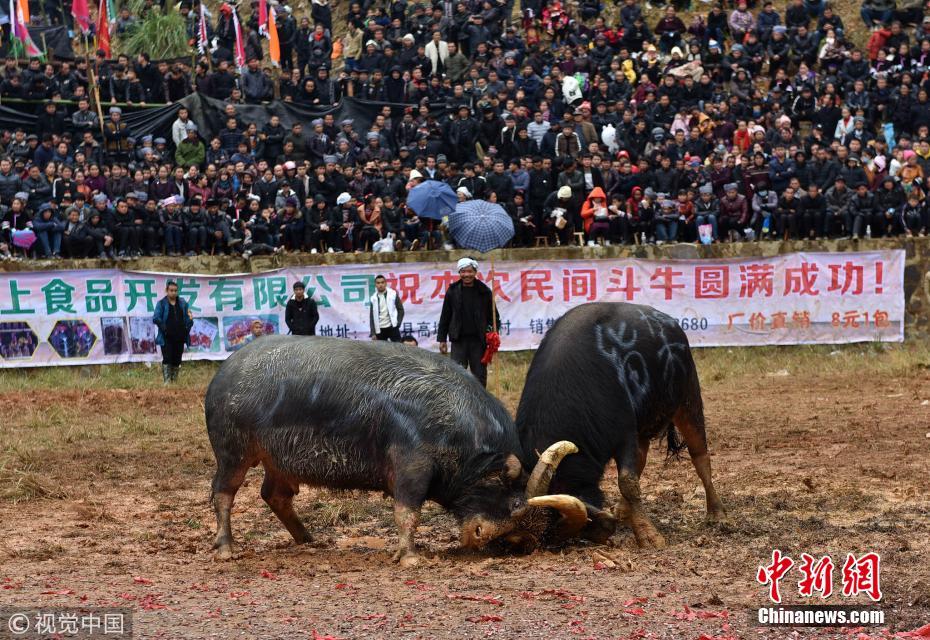 贵州黔东南举行传统斗牛活动 上万名群众前来观看