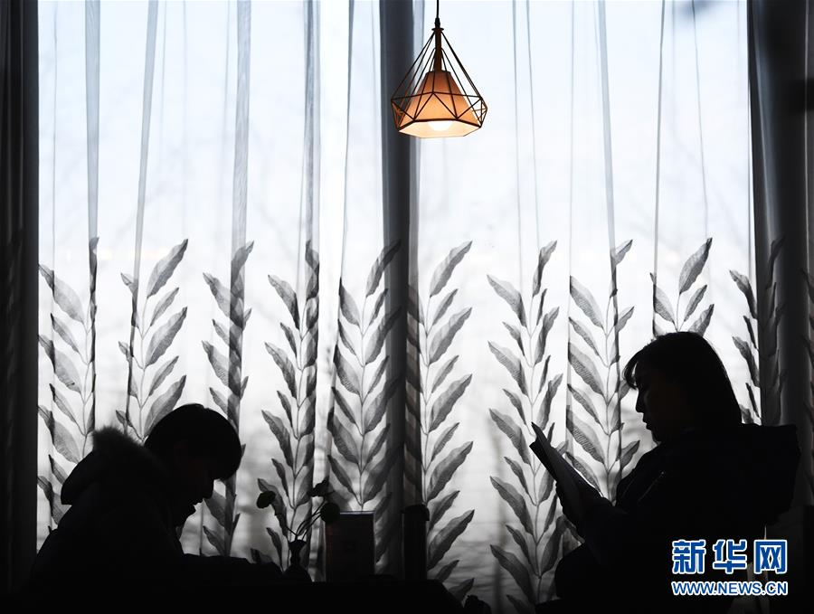 1月17日,学生在甘肃省兰州市西固区中天嘉苑社区“读者小站”里阅读。