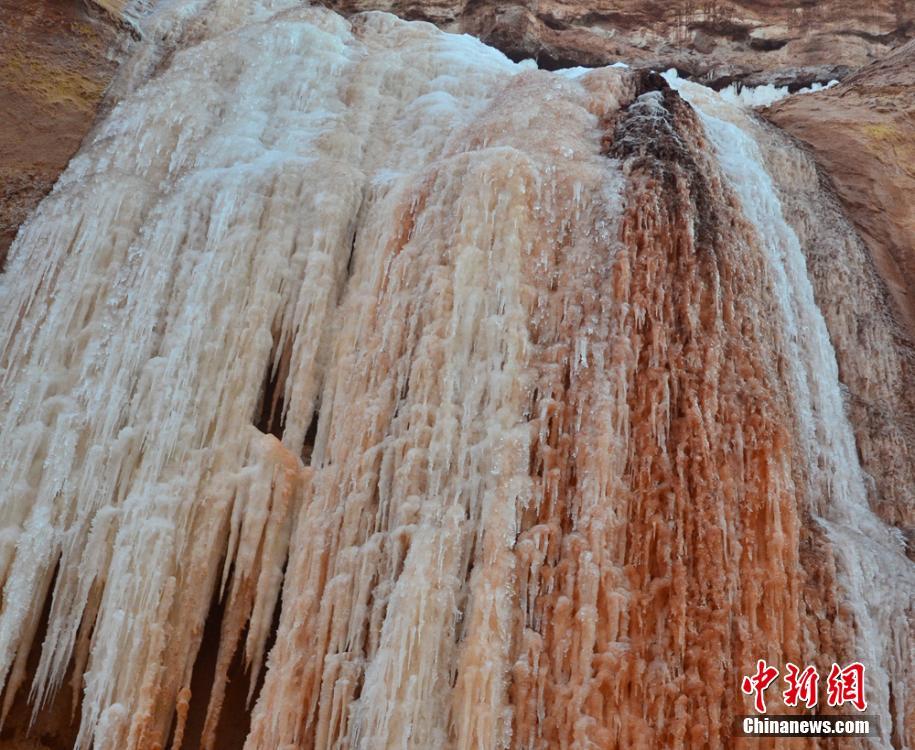 甘肃刘家峡赤壁“结”出多彩冰瀑