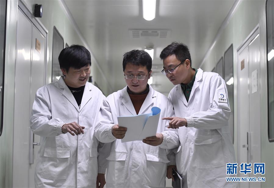 1月17日,嫦娥四号地形地貌相机中科院光电技术研究所研制人员在讨论相机测试方案。