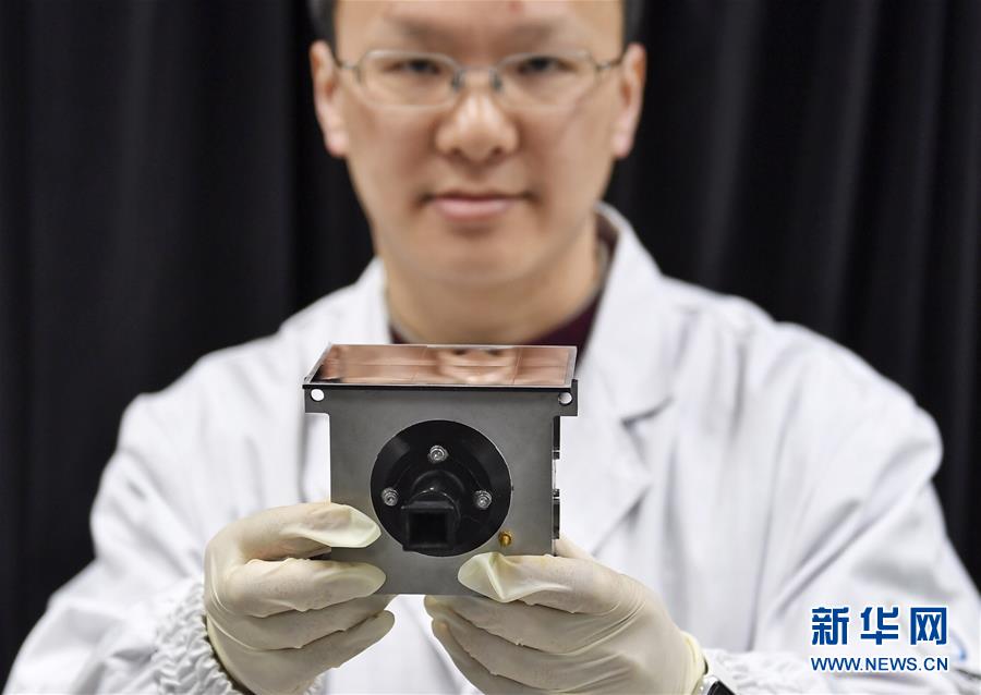 1月17日,中科院光电技术研究所科研人员在展示地形地貌相机样机。