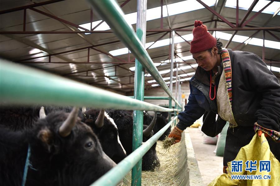 1月17日,泽库县牧民多杰才旦给牲畜添加草料。 入冬以来,青海全省降雪偏多,三江源地区、柴达木盆地等地先后出现大范围降雪降温天气。为应对气候变化给农牧业带来的影响,地处三江源地区的黄南藏族自治州泽库县农牧民积极储备草料,确保农牧区牲畜安全越冬。 新华社发(张龙 摄)