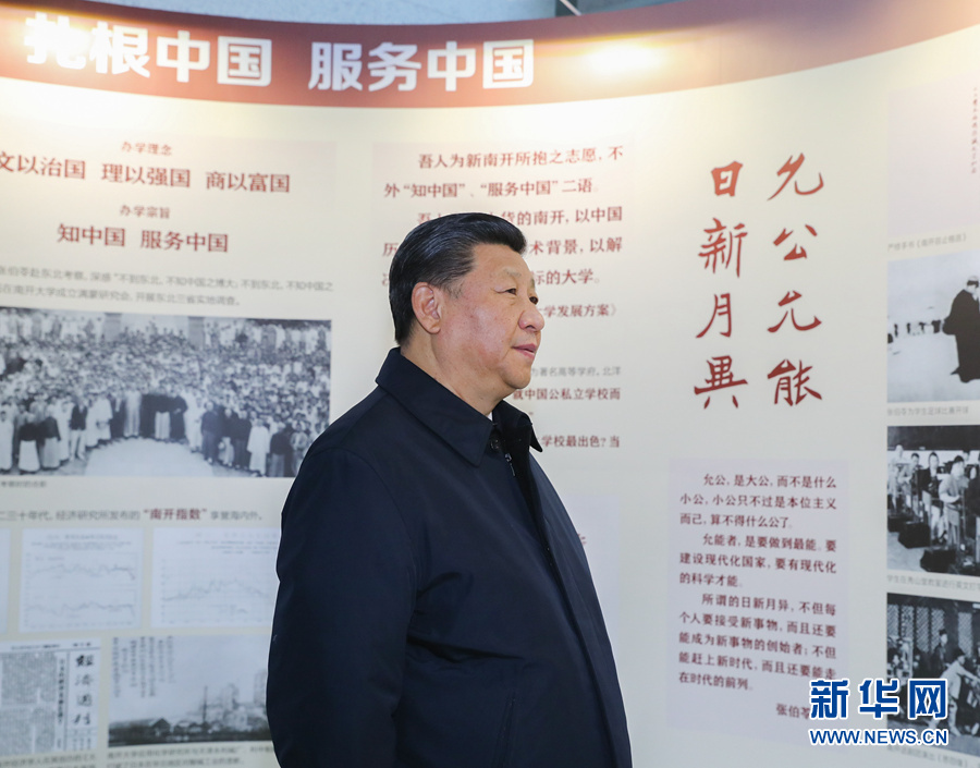 1月16日至18日,中共中央总书记、国家主席、中央军委主席习近平在京津冀考察,主持召开京津冀协同发展座谈会并发表重要讲话。这是1月17日上午,习近平在天津南开大学参观校史展览。 新华社记者 谢环驰 摄