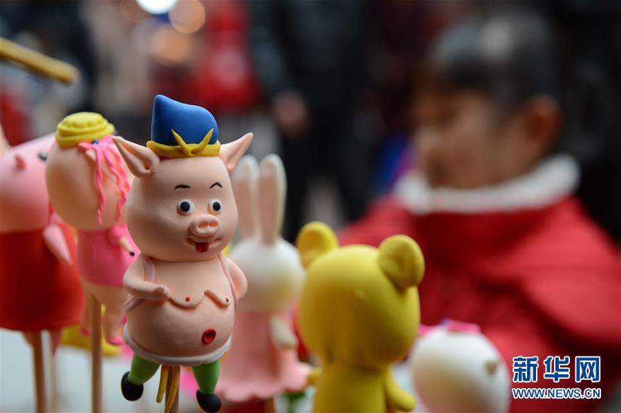 这是1月19日在贵州省黔南布依族苗族自治州龙里县龙门武侠小镇拍摄的面塑。新华社发(潘希来 摄)