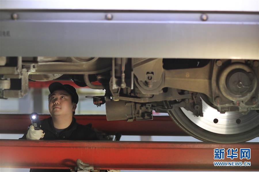 当日,中国铁路成都局集团有限公司贵阳车辆段贵阳北动车运用所内灯火通明,一片繁忙景象。春运临近,贵阳北动车运用所300余名员工值守夜间,对配属的动车组进行检修维护。 新华社记者 欧东衢 摄