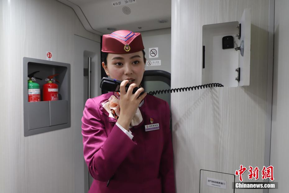 1月19日,伏玲在进行车厢广播。今年27岁的伏玲,是中国铁路总公司成都局集团有限公司贵阳客运段动车二队列车长,她在铁路系统已经工作5年,是贵州首批动车乘务员,并于2016年取得动车列车长资质。伏玲主要有开车前的引导、巡视车厢、检查危险品等值乘工作。2019年春运临近,加开列车和旅客数量将增多,届时,她的工作量加大。她说,她已做好春运服务工作的准备,将用心服务好旅客,让旅客能够平平安安回家。中新社记者 瞿宏伦 摄