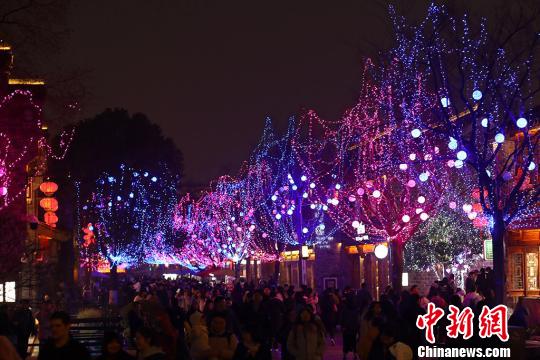 夫子庙文德桥上的彩灯点亮。 泱波 摄