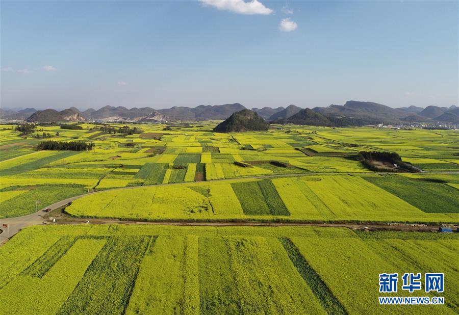 大寒时节,云南省罗平县种植的油菜花开放,鲜艳的色彩在田野中铺陈开来,透出春意。