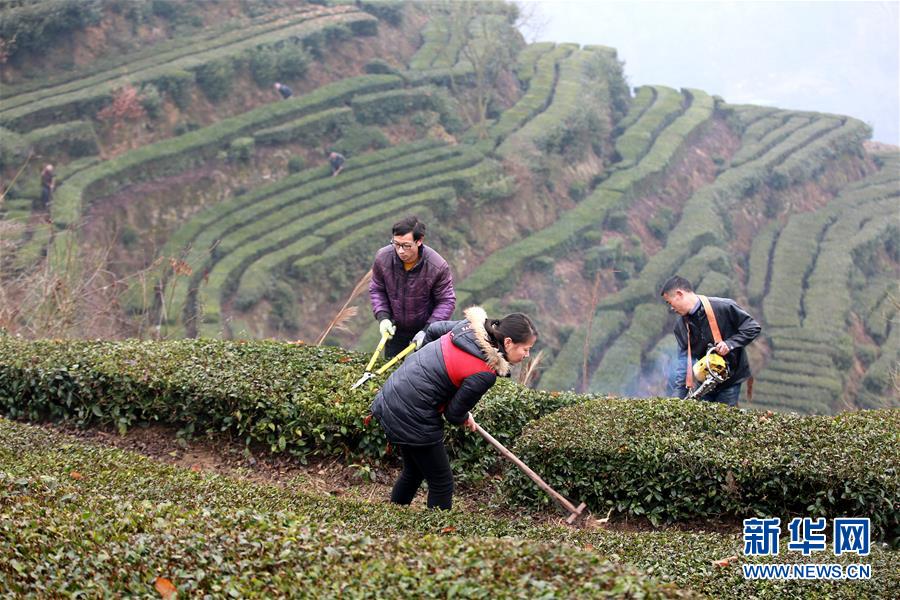 大寒时节,秭归县茶农采取培土施肥、打顶修边、清园消毒等管护措施,为春茶生产做准备。