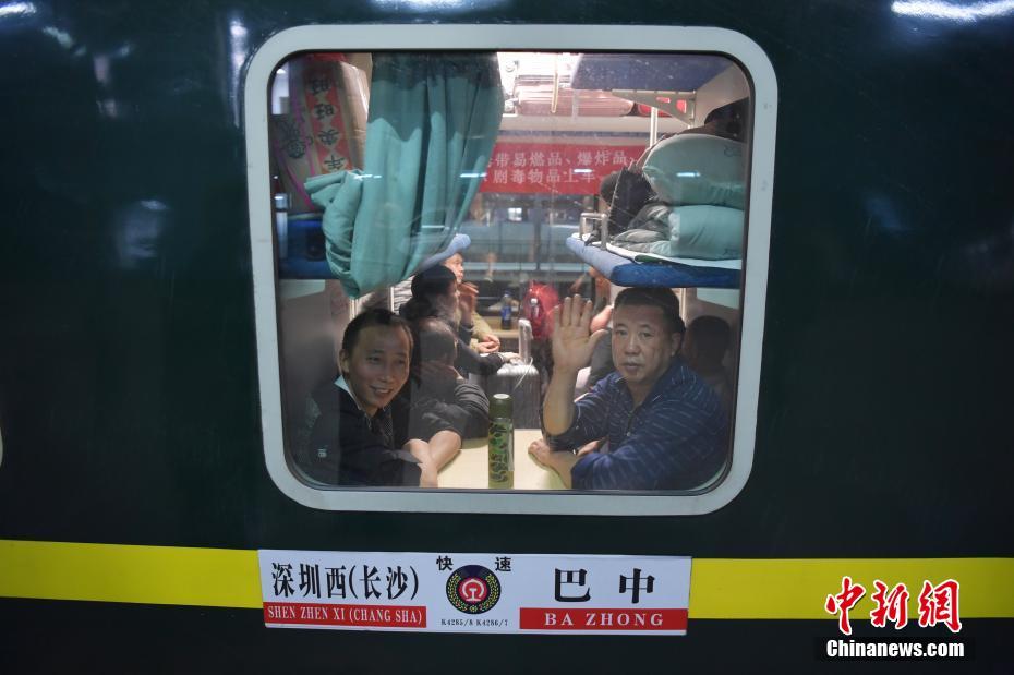 1月21日凌晨1点,2019年春运深圳地区首趟临时长途旅客列车K4286次从深圳火车西站发出,2320名来深建设者搭乘开往四川巴中的返乡列车。 中新社记者 陈文 摄