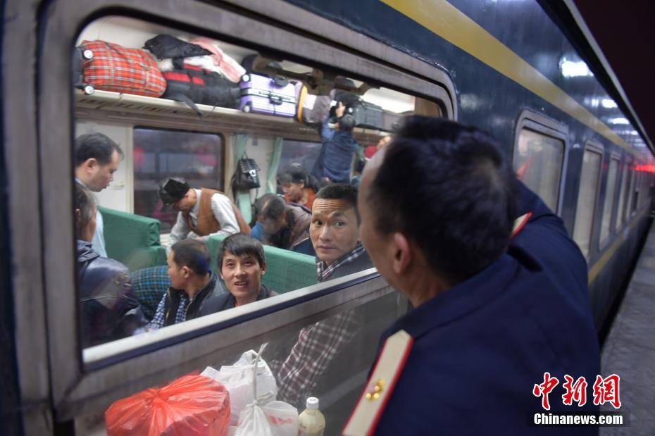 1月21日凌晨1点,2019年春运深圳地区首趟临时长途旅客列车K4286次从深圳火车西站发出,2320名来深建设者搭乘开往四川巴中的返乡列车。 中新社记者 陈文 摄