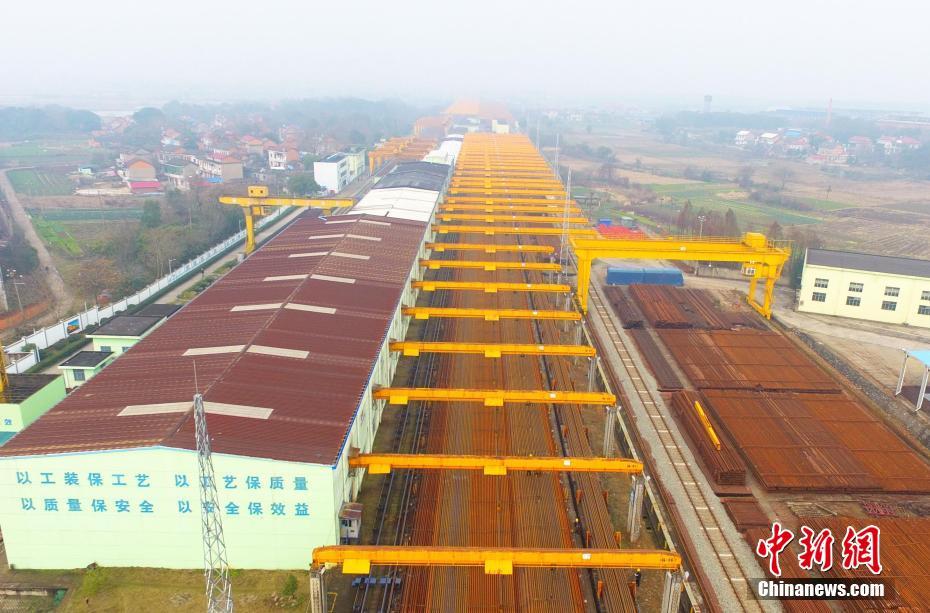 1月20日,航拍位于江西省南昌县境内的向塘长轨基地,焊接好的一根根高铁钢轨,整齐划一地排列在一起,高空俯瞰十分壮观。向塘长轨基地隶属于中国铁路南昌局集团有限公司鹰潭工务机械段,是全国铁路16个高铁焊轨基地之一,也是目前华东地区最大的焊轨基地,在这里一根根100米的钢轨被焊接成500米。 中新社记者 刘占昆 摄