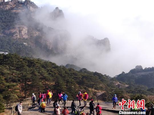 1月20日,安徽黄山风景区现日出、云海和雾淞景观。当日早间,雨后的黄山风景区雾霭蒸腾,天都峰、莲花峰、光明顶三大主峰若隐若现,宛如仙境一般。雾凇衬托着朝霞,耀眼夺目,许多游客纷纷用相机手机拍下这一精彩的瞬间。文/刘浩