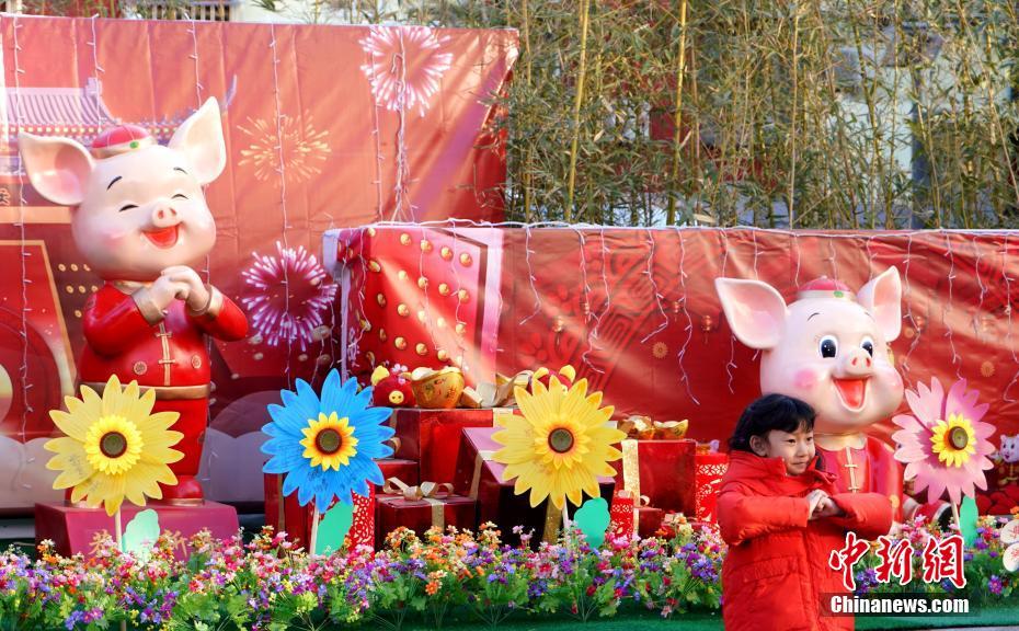 1月20日,一名小朋友在河北石家庄市正定县长乐门文化广场举行的新春年货大集上玩耍。 新华社发(梁子栋 摄)
