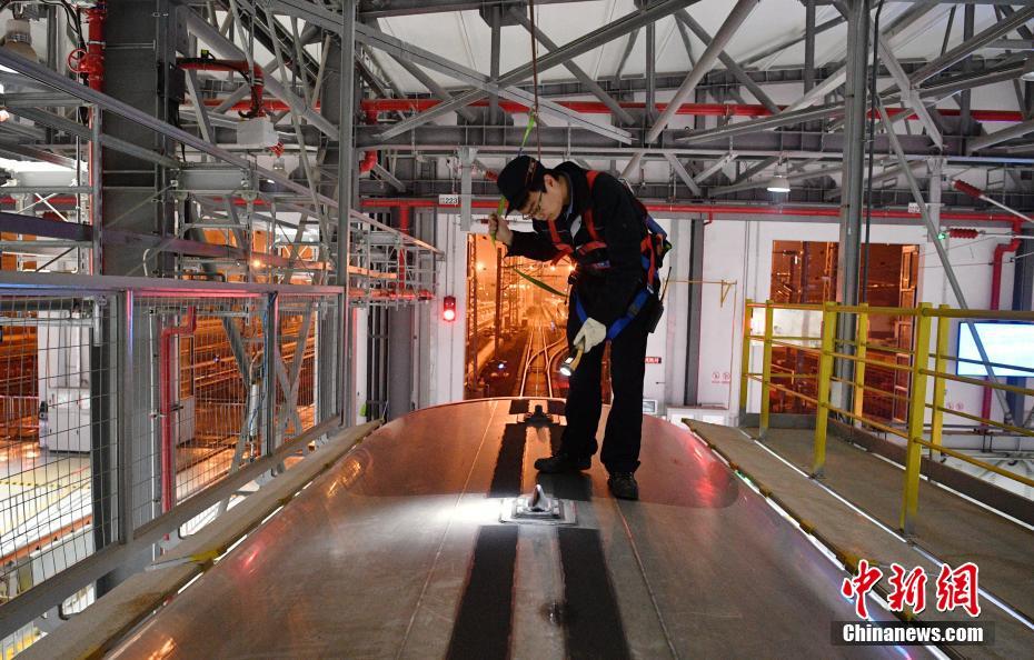 1月20日,四川成都,动车组机械师正在动车车顶检修。当日,中国铁路成都局集团有限公司成都动车段成都东动车运用车间内,100余名动车组机械师对投入春运的所有动车组展开检修和维护,迎接为期40天的2019年春运。中新社记者 刘忠俊 摄