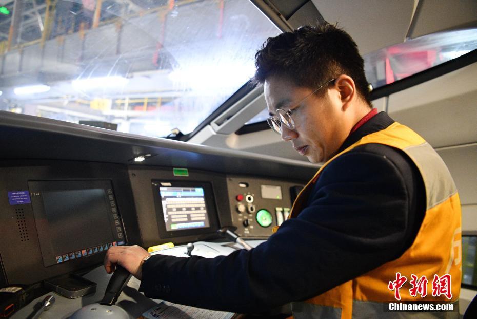 1月20日,四川成都,动车司机检查驾驶室设备。当日,中国铁路成都局集团有限公司成都动车段成都东动车运用车间内,100余名动车组机械师对投入春运的所有动车组展开检修和维护,迎接为期40天的2019年春运。中新社记者 刘忠俊 摄