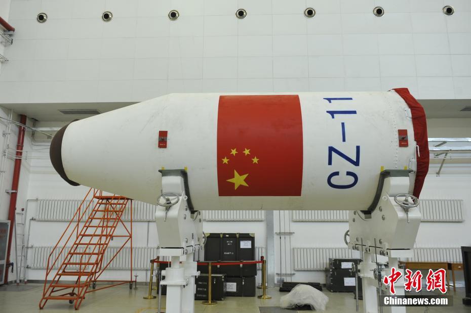 图为执行本次一箭四星发射任务的长征十一号运载火箭,发射之前进行相关测试。石立群 摄 (中国运载火箭技术研究院/供图)