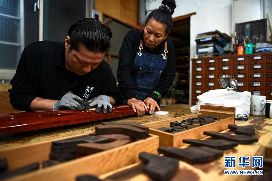 1月17日,林立正的次子林法(左)在台北“梓作坊古琴艺术工坊”内维修古琴。新华社记者李响摄