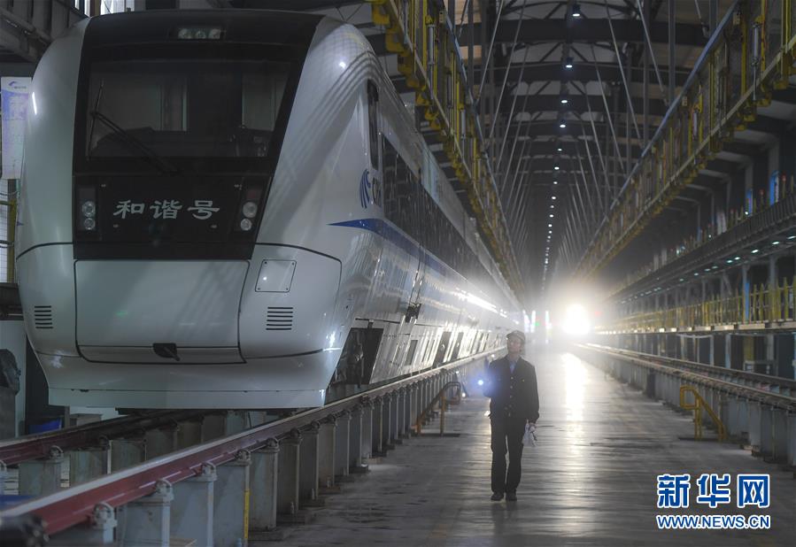 1月20日,李长安在位于福州城北的动车检修车间巡检。新华社记者宋为伟摄