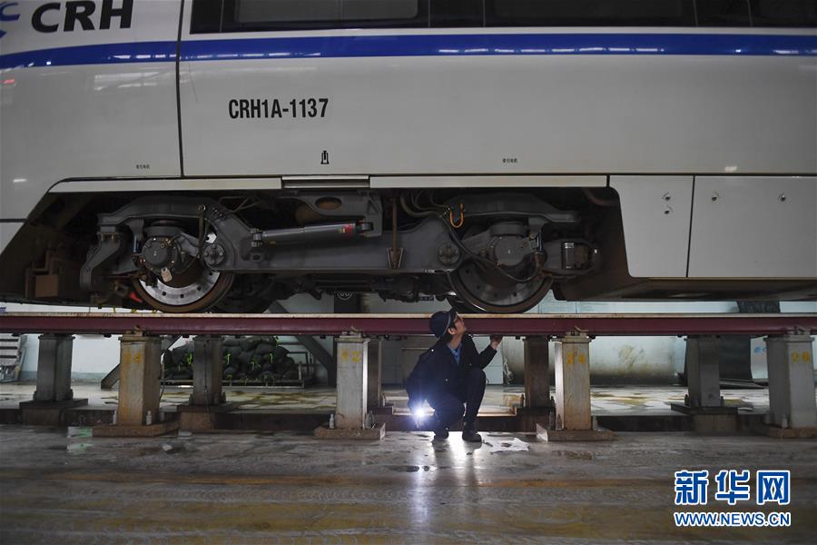 1月20日,在位于福州城北的动车检修车间,李长安在检修车辆。新华社记者宋为伟摄