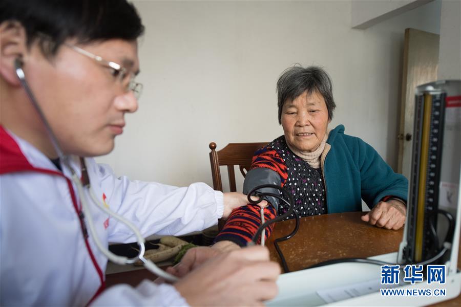 1月21日,志愿者为诸暨市东白湖镇陈蔡村行动不便的老人入户检查身体。 为激活各类优质资源,实现便民服务,浙江省诸暨市自2018年起累计成立7个便民志愿者联盟,整合医疗、维修、书画、金融等服务内容,推动便民服务方式从“单打独斗”走向“抱团发展”。 新华社记者翁忻旸摄