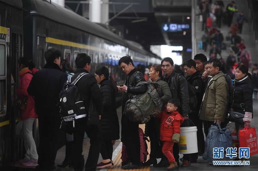 1月21日,在福州火车站,乘坐K4186次列车的乘客进站上车。 当日,福建省发出2019年春运首列临客列车K4186次。该列车从福建省福州市发出,途经江西、湖北,最后到达四川省广安市,全程近30小时,运送旅客超过2500名。 新华社记者 宋为伟摄